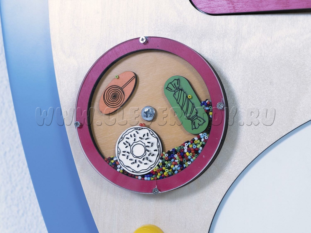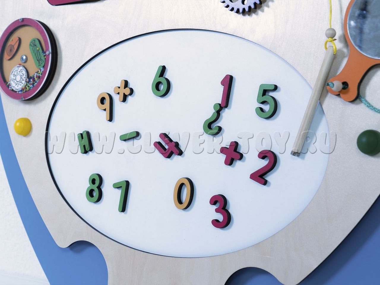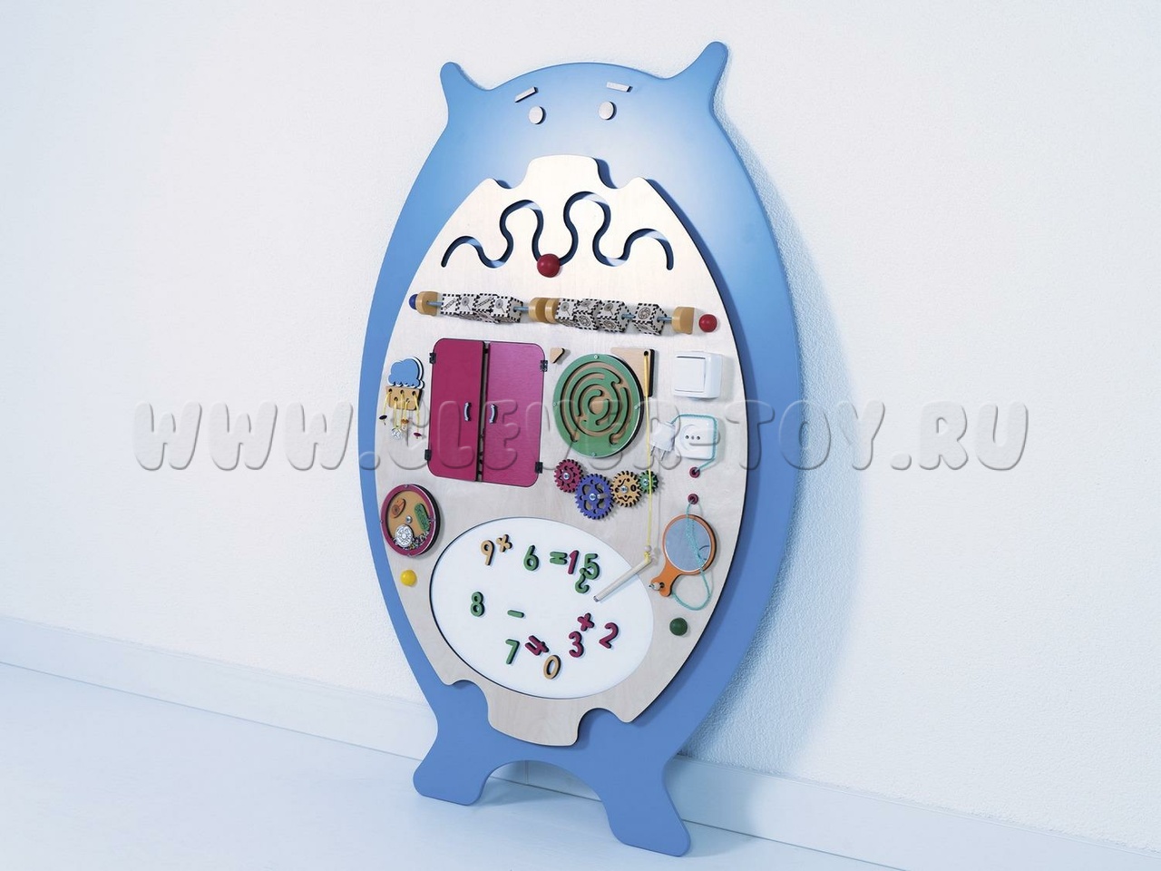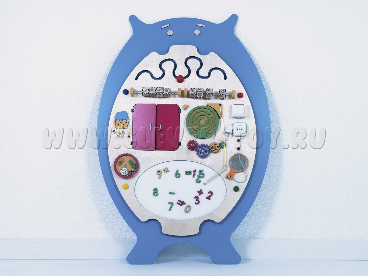 Бизиборд "Зёва" предназначен для детских образовательных учреждений и помогает изучать геометрические фигуры (форму, количество углов, вид, цвет и особенности). Задания составлены по принципу "от простого к сложному". Например, при изучении геометрических фигур можно тренироваться в счёте, определяя количество углов. Также можно рисовать запомнившиеся фигуры или играть в крестики-нолики, вращая фигуры.