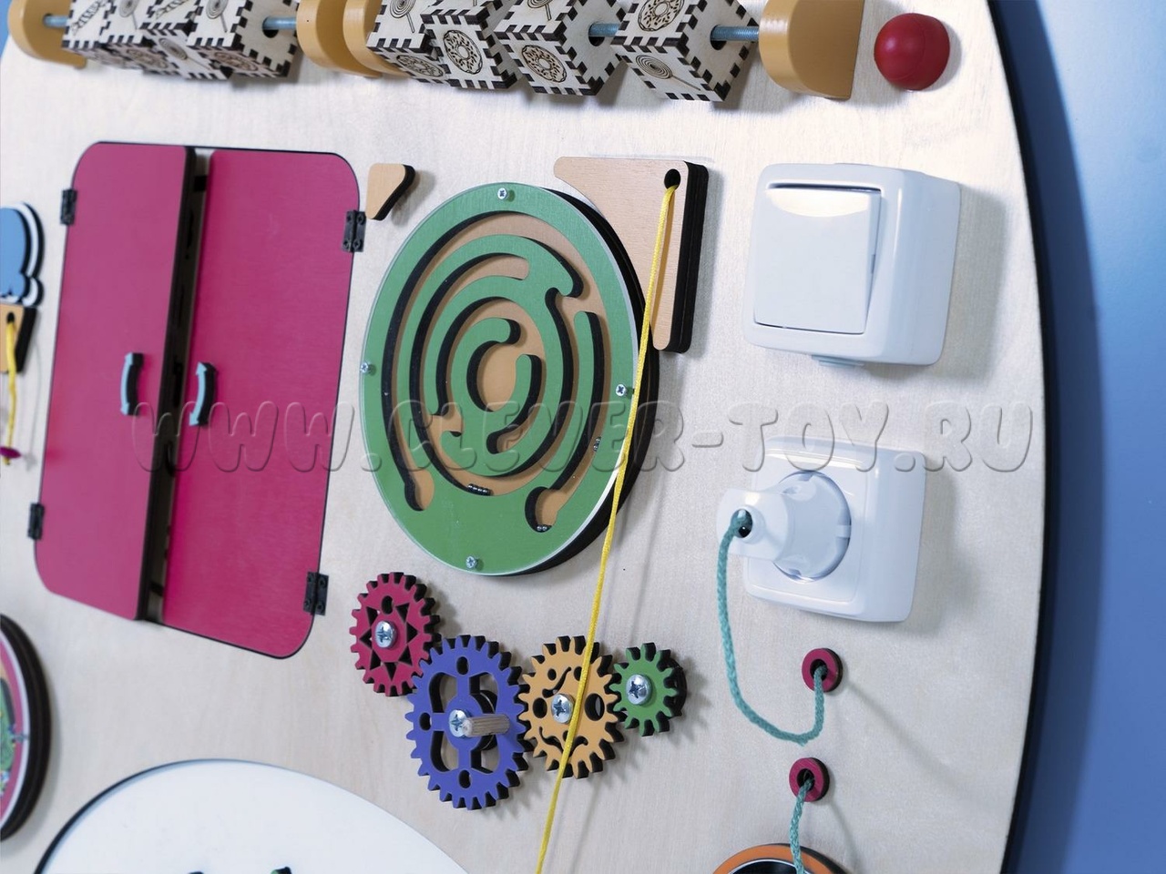 Основная цель бизибордов - помочь детям безопасно освоить предметы быта (замки, крепления, механизмы, переключатели, розетки) и развить мелкую моторику. Используя обесточенные тренажёры с яркими рисунками, дети улучшают свои навыки и готовятся применять их на практике.