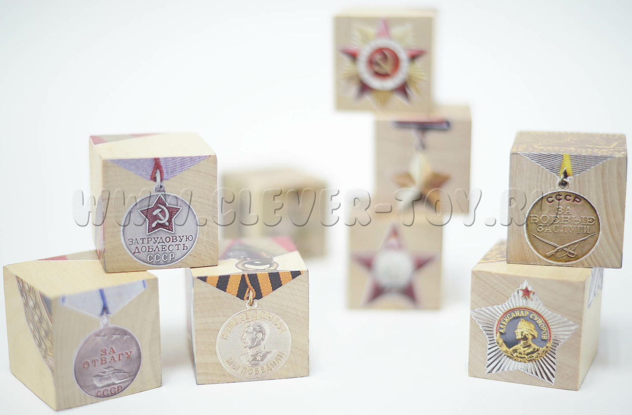 Набор интерактивных деревянных кубиков «Награды Победы» созданы к 75-летию победы в Великой Отечественной Войне. На них изображены ордена и медали, которые в годы войны изготавливались на Краснокамском Гознаке.