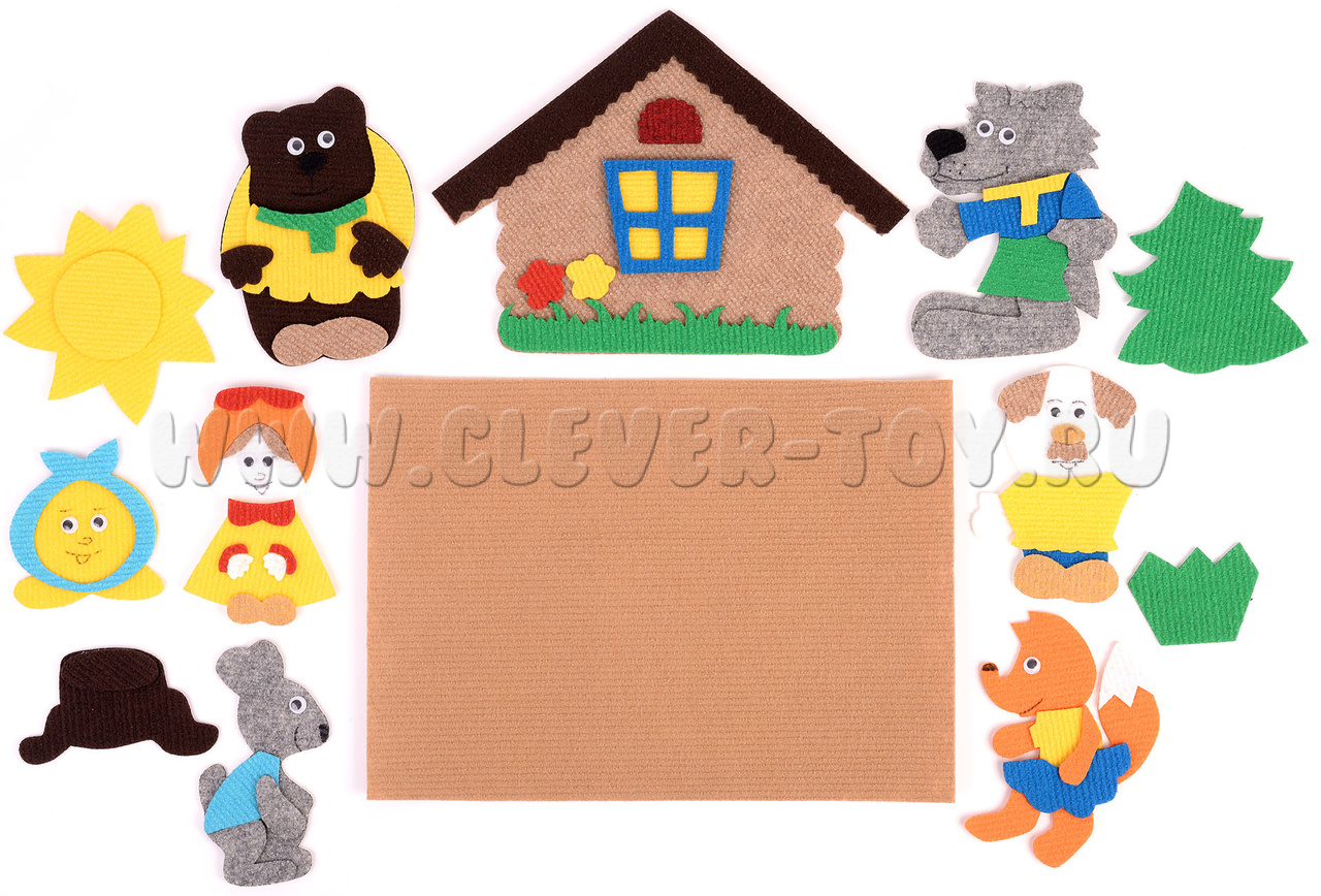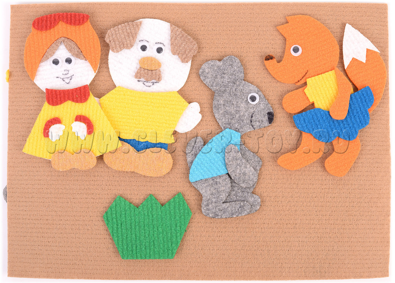 Герои сказки «Колобок» буквально оживают в руках вашего малыша. Ковролиновые герои сказки на липучках: