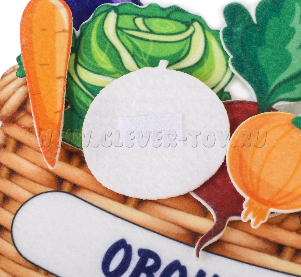 Многоразовая аппликация на липучках "Овощная корзинка помогает малышам развивать":