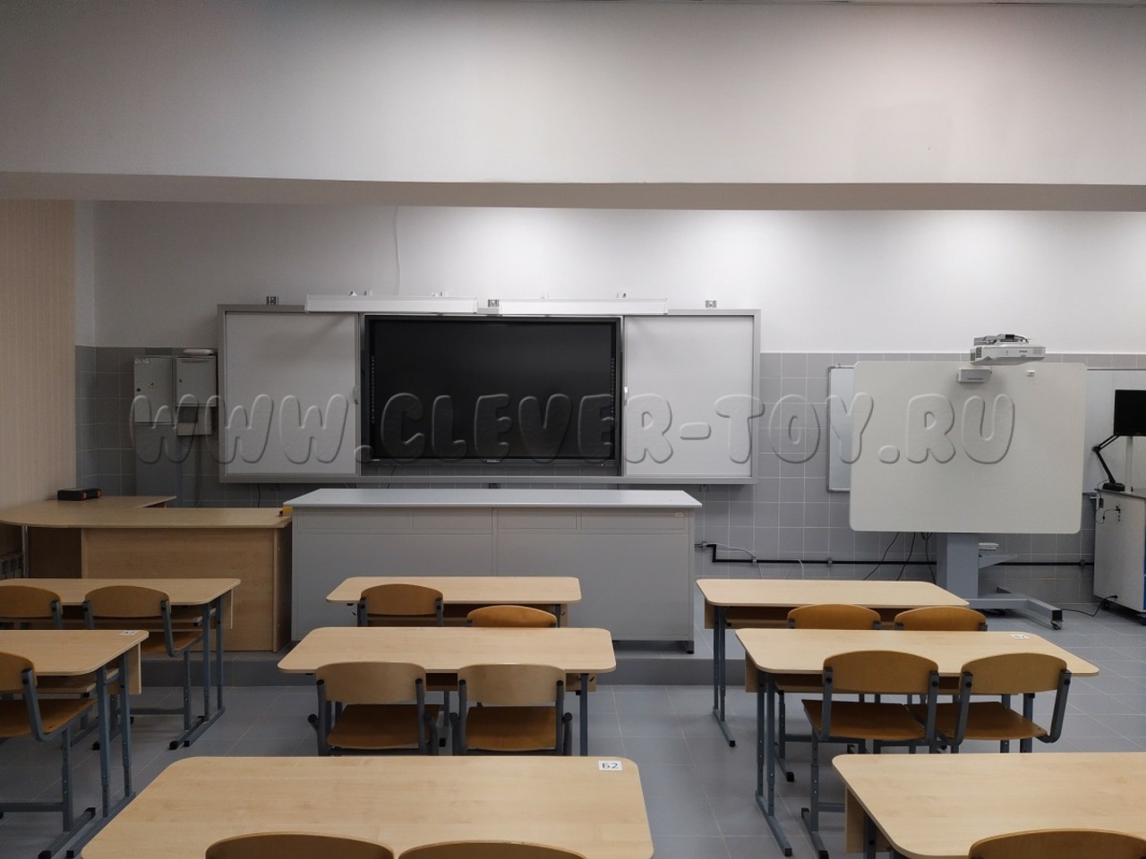 Рельсовая система — это цельная конструкция, состоящая из каркаса и четырёх рабочих поверхностей. Покрытие может быть магнитно-меловым, магнитно-маркерным или комбинированным.