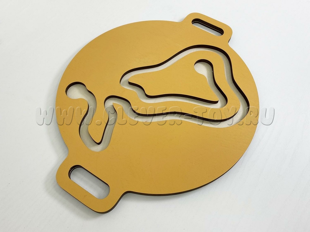Он представляет собой круглую доску с двумя ручками по бокам и лабиринтом. Задача ребёнка — прокатить шарик через лабиринт, используя движения рук. Игра с балансиром развивает крупную моторику, пространственную ориентацию, логическое мышление и улучшает концентрацию внимания и усидчивость.