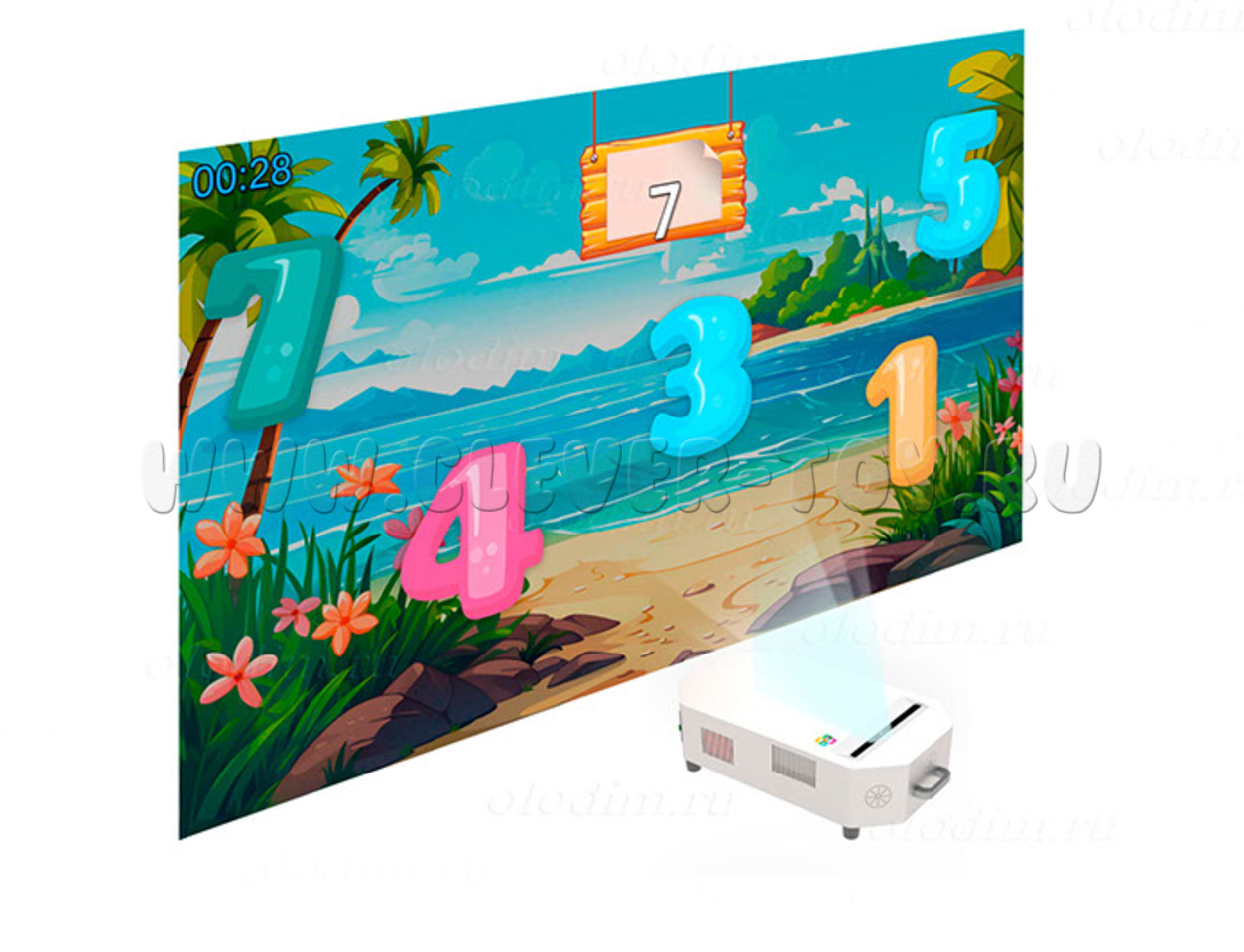 Оборудование оснащено премиальным проектором, который обеспечивает большую, яркую и насыщенную картинку. Внутри антивандального корпуса надежно защищены все важные компоненты: проектор, датчик, компьютер и провода.