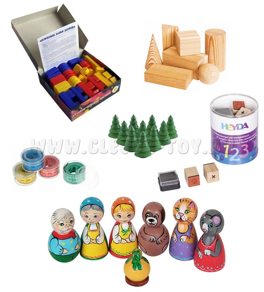 • Дополнительное игровое оборудование: фишки и игровые кубики, штампы с цифрами, настольный театр и др. Все составляющие комплекса, включая раздаточные карточки для детей, дополняют друг друга и делают работу воспитателя методически осмысленной и планомерной, не сдерживая его инициативу и творчество.