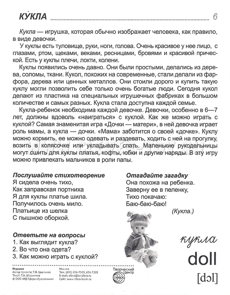 16 демонстрационных картинок для познавательного и речевого развития. На обороте каждой предметной картинки - описание, стихотворение, загадка, вопросы для ребёнка, название на русском и английском языках.