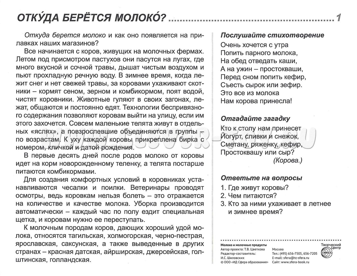 Комплект состоит из 16 цветных демонстрационных картинок, адресован детям и их родителям, желающим познакомиться с современными технологиями изготовления молочной продукции, ее многообразием и значением для жизнедеятельности человека.