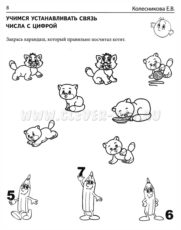 При проведении самоконтроля давайте ребёнку чёткие критерии правильно выполненного задания (например, ты должен был обвести цифру 5), сверяясь с которыми, он самостоятельно оценивает свою работу. С этой целью на каждой страничке нарисован Колобок-смайлик, у которого не обозначен ротик (эмоция), его должен изобразить ребёнок, оценивая свою работу.