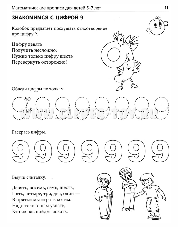 Второе издание дополнено прописями, а также вопросами, отвечая на которые, дети называют числительные, слова, обозначающие геометрические фигуры, и т.д., овладевают математическим словарём. В предыдущих прописях для возраста 4-5 лет ребёнок научился проводить горизонтальные и вертикальные линии в разном направлении, рисовать округлые формы, штриховать, познакомился с цифрами от 1 до 5, приобрёл умение обводить их по точкам, закрашивать. Используя полученные знания и навыки, ему будет легче выполнять задания в данных прописях.