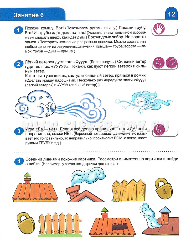 Предлагаются задания для развития мелкой и артикуляционной моторики, речевого дыхания, произвольного общего и слухового внимания, памяти, неречевого и речевого слуха, формирования словарного запаса и связной речи.