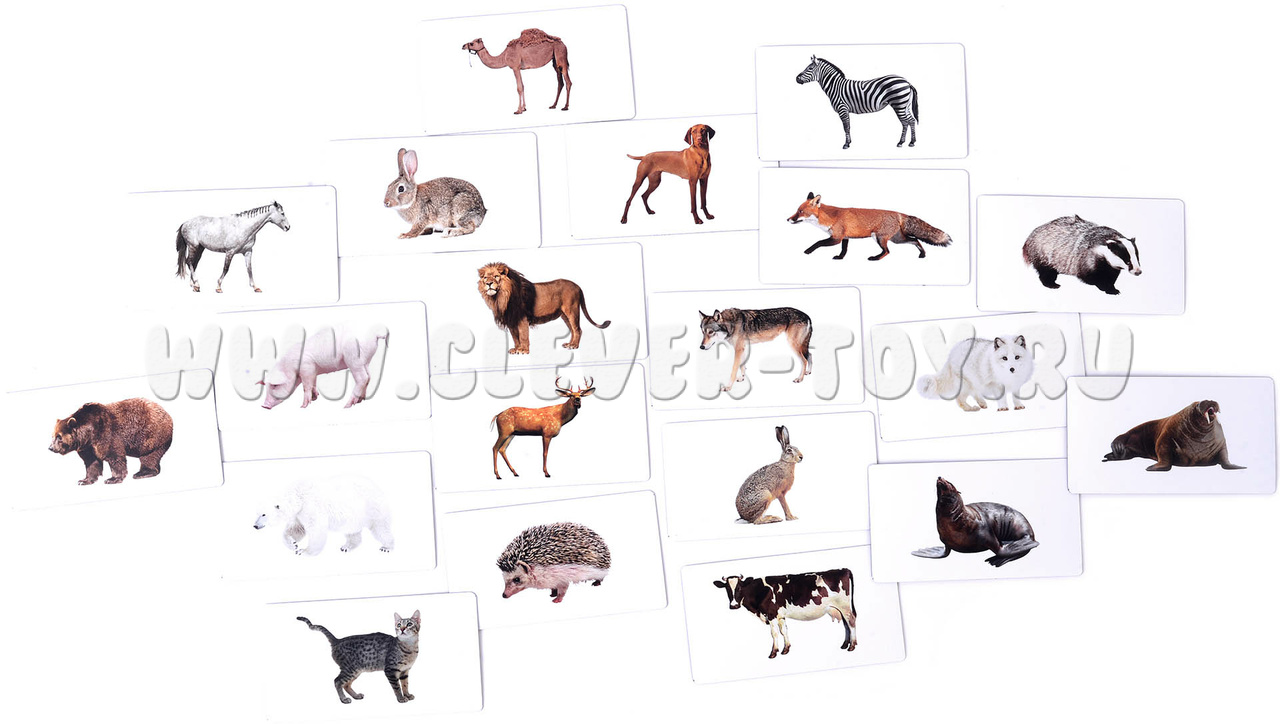 - 20 карточек с животными (50 мм х 90 мм): раздаточный материал;