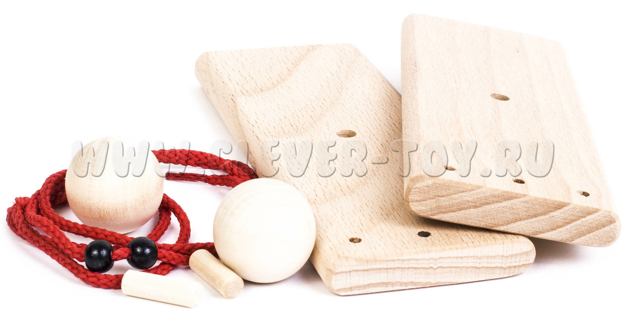 - Хлопушка- состоит из двух деревянных пластин, соединенных шнуром в нижней части. С наружной стороны прикреплены ручки.