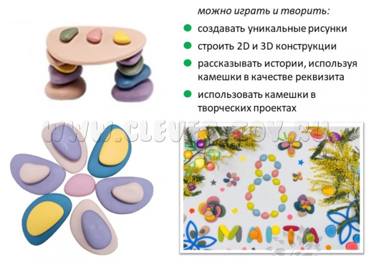 Набор "Радужные камешки" способствует сенсорному, социально-коммуникативному, познавательному, речевому и физическому развитию, а также оказывают положительное влияние на психику ребенка.