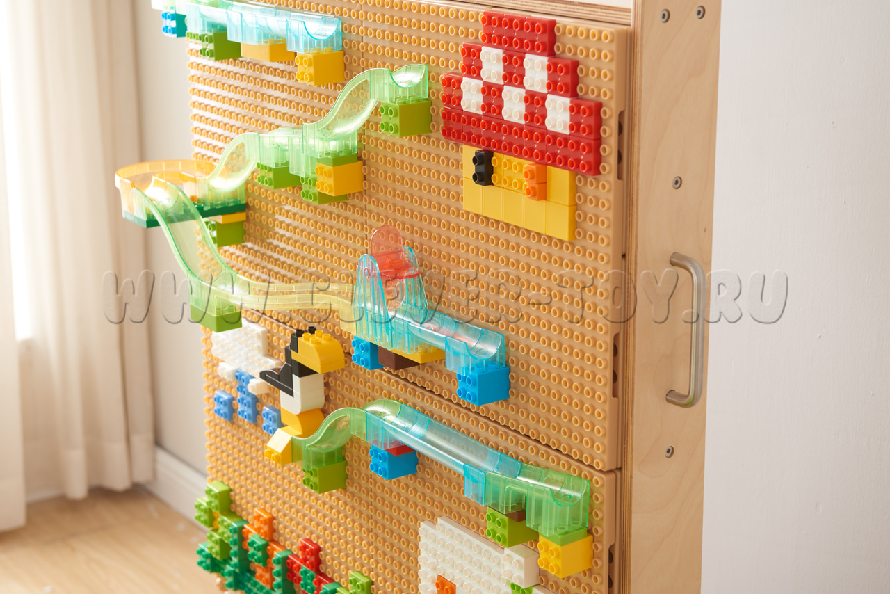 Внимание: колышки, сокровища, шнуровки, винты, кинетические треки, развивающие панели и другие комплекты для STEM-стены приобретаются отдельно.